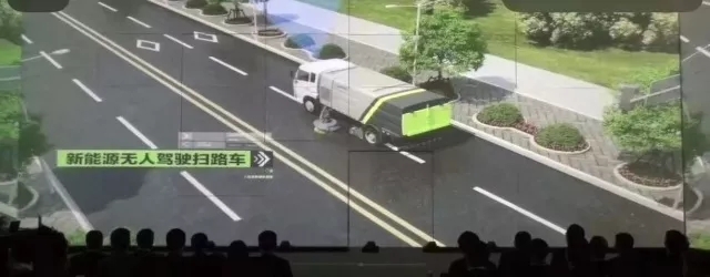 ▲無人駕駛掃路機在作業(yè)演示