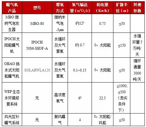 增氧曝氣技術(shù)產(chǎn)品的參數(shù)對比