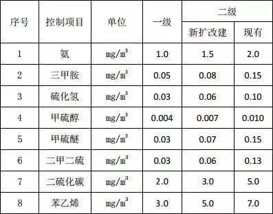卸料大廳采用離子氧送風(fēng)除臭系統(tǒng),垃圾池間采用化學(xué)洗滌除臭系統(tǒng),廠界惡臭污染物執(zhí)行《惡臭污染物排放標(biāo)準(zhǔn)》(GB14554-1993)中的二級(jí)新建項(xiàng)目標(biāo)準(zhǔn)限值。惡臭無(wú)組織排放執(zhí)行以下標(biāo)準(zhǔn):