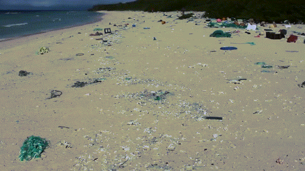 遍布全球海域的大洋環(huán)流將裹挾的塑料垃圾碎片帶往各個緯度,而位于南太平洋環(huán)流上的哈德森島就成了一個沉積帶,也成為了來自內(nèi)陸垃圾的最終污染地。