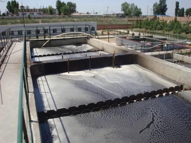 水解酸化池內(nèi)部可以不設(shè)曝氣裝置,控制停留時(shí)間再水解、酸化階段,不出現(xiàn)厭氧產(chǎn)氣階段,前兩個(gè)階段的COD去除率不是很高,因?yàn)樗哪康闹皇菍⒋蠓肿拥淖兂尚》肿佑袡C(jī)物,一般去除率在20%左右,產(chǎn)氣階段的COD去除率一般在40%左右,但這是產(chǎn)生的硫化氫氣體要進(jìn)行除臭處理,且達(dá)到產(chǎn)氣階段的停留時(shí)間要較前兩階段長,也就是要出現(xiàn)厭氧狀態(tài)。缺缺氧池內(nèi)要設(shè)置曝氣裝置,控制溶解氧在0.3-0.8mg/l,利用兼氧微生物及生物膜來降解廢水中的有機(jī)物,接觸氧化池內(nèi)的曝氣器要慎重選擇,既要保證供氧量,又要確保有利于生物膜的脫落、更新。一般不選用微孔曝氣器作為池底的曝氣器。
