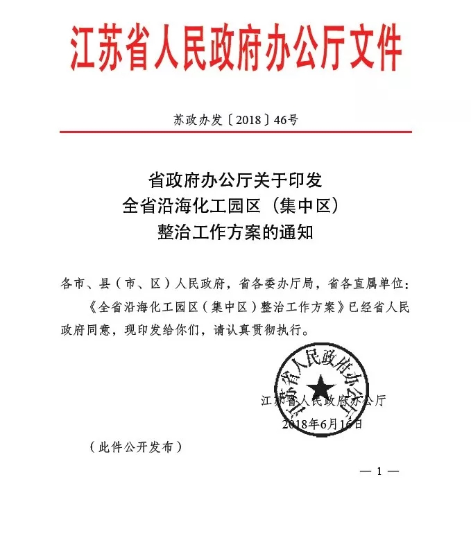 日前,江蘇省辦公廳印發(fā)了《全省沿海化工園區(qū)(集中區(qū))整治工作方案的通知》(蘇政辦發(fā)【2018】46號,下稱46號文),文件要求對沿海地區(qū)南通、連云港、鹽城三市轄區(qū)內(nèi)所有化工園區(qū)及園區(qū)內(nèi)所有化工生產(chǎn)企業(yè)進行整治。另有消息稱,江蘇省環(huán)保廳也下發(fā)了復(fù)產(chǎn)通知,對園區(qū)和企業(yè)環(huán)保達(dá)標(biāo)做出具體規(guī)定。