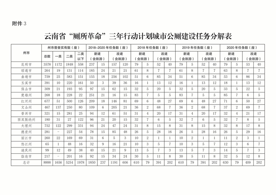 3.云南省“廁所革命”三年行動(dòng)計(jì)劃城市公廁建設(shè)任務(wù)分解表