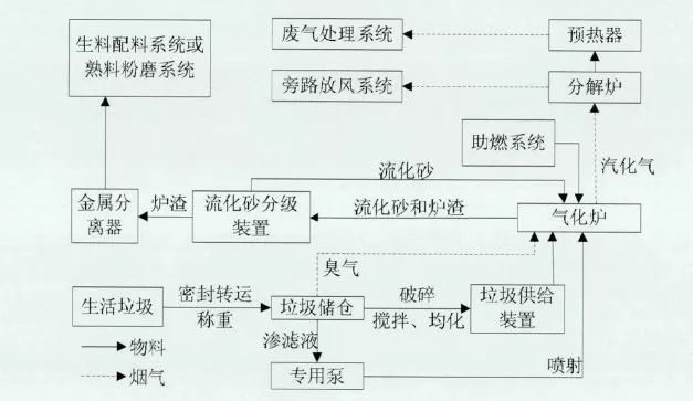 圖4 垃圾焚燒氣化爐與水泥窯協(xié)同處置生活垃圾工藝流程圖