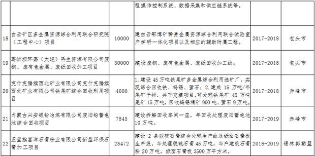 資源綜合利用。積極爭取國家在內(nèi)蒙古布局高鋁粉煤灰提取氧化鋁項目,擴(kuò)大產(chǎn)業(yè)化規(guī)模,降低氧化鋁進(jìn)口比例。利用粉煤灰、煤矸石、礦渣生產(chǎn)水泥、新型墻材、土壤改良劑、復(fù)合肥等,到2020年,煤矸石、粉煤灰等大宗工業(yè)固廢綜合利用率達(dá)到45%。推進(jìn)工業(yè)園區(qū)高濃度難降解工業(yè)廢水、重金屬廢水、城鎮(zhèn)污水綜合利用。支持包頭建設(shè)國家“城市礦產(chǎn)”示范基地,發(fā)展報廢汽車、廢舊電子電器等資源再利用產(chǎn)業(yè)。