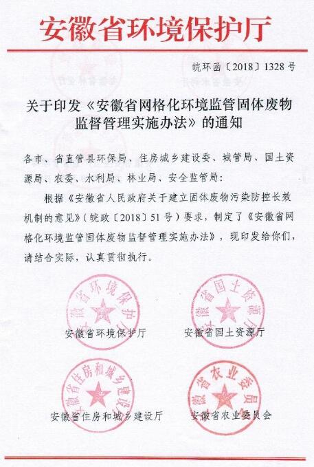 日前,安徽環(huán)保廳公布《安徽省網(wǎng)格化環(huán)境監(jiān)管固體廢物監(jiān)督管理實(shí)施辦法》,詳情如下: