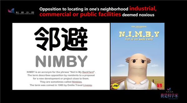 “鄰避”是什么呢?“鄰避” 實(shí)際上是音譯,英文叫:NIMBY,是五個(gè)英文單詞(Not In My Back Yard)的首字母的縮寫。所以有人中文做了一個(gè)非常好的翻譯叫:鄰避。