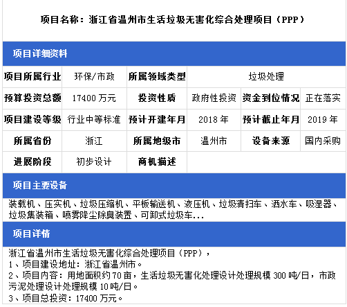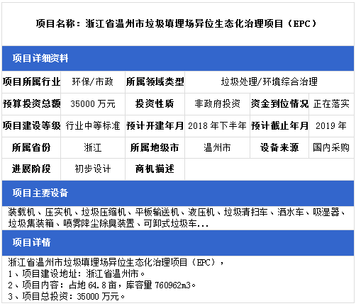 中項(xiàng)網(wǎng)獨(dú)家授權(quán)北極星固廢網(wǎng)發(fā)布最新垃圾處理項(xiàng)目(2018年10月22日更新),其中包括垃圾中轉(zhuǎn)站建設(shè)項(xiàng)目、垃圾發(fā)電廠配套填埋場項(xiàng)目、生活垃圾綜合處理項(xiàng)目等。具體內(nèi)容如下: