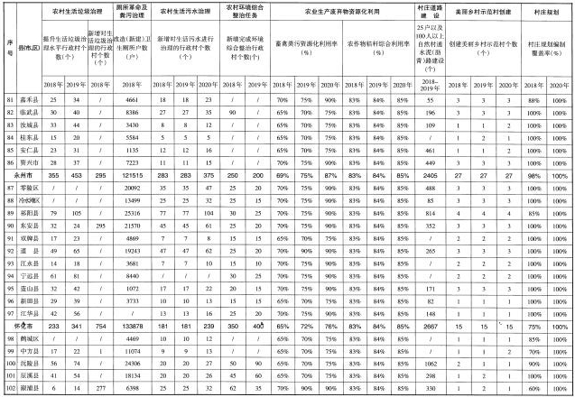 (一)深入推進(jìn)農(nóng)村生活垃圾治理。實(shí)施“農(nóng)村生活垃圾治理工程”,加快農(nóng)村垃圾五年專項(xiàng)治理,統(tǒng)籌考慮生活垃圾和農(nóng)業(yè)生產(chǎn)廢棄物利用、處理,建立符合農(nóng)村實(shí)際的農(nóng)村生活垃圾收運(yùn)處置體系,建立穩(wěn)定高效的運(yùn)行維護(hù)管理機(jī)制。推廣適合農(nóng)村特點(diǎn)的垃圾就地分類和資源化利用方式,不斷提升農(nóng)村垃圾治理水平。對(duì)較大規(guī)模的非正規(guī)垃圾堆放點(diǎn)和河道水面漂浮垃圾進(jìn)行清理整治,清理河湖沿岸垃圾,重點(diǎn)整治“垃圾山”、“垃圾島”、“垃圾圍村”、“垃圾圍壩”、工業(yè)污染“上山下鄉(xiāng)”。加強(qiáng)生活垃圾處理技術(shù)研究和設(shè)施研發(fā),鼓勵(lì)和支持秸稈、畜禽糞便等農(nóng)業(yè)廢棄物資源綜合利用。2018年,新增對(duì)垃圾進(jìn)行處理的行政村2400個(gè)左右,全省對(duì)垃圾進(jìn)行處理的行政村比例基本達(dá)到90%,每個(gè)市州選擇1個(gè)縣市區(qū)開(kāi)展農(nóng)村生活垃圾就地分類和資源化利用的試點(diǎn)。2019年,基本達(dá)到國(guó)家農(nóng)村生活垃圾治理驗(yàn)收標(biāo)準(zhǔn),達(dá)到“五有”標(biāo)準(zhǔn)。2020年,全面完成農(nóng)村生活垃圾治理任務(wù)。