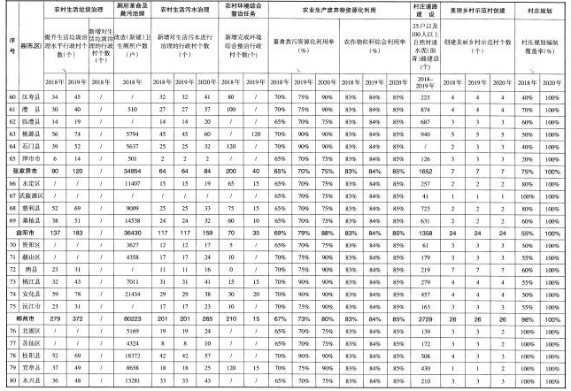 中心城市城區(qū)和長(zhǎng)株潭經(jīng)濟(jì)強(qiáng)縣市區(qū)農(nóng)村人居環(huán)境質(zhì)量全面提升,所有村莊生活垃圾得到有效治理,垃圾分類減量和資源化利用全覆蓋,村莊日常保潔機(jī)制全面建立,農(nóng)戶衛(wèi)生廁所普及率達(dá)到100%,廁所糞污基本得到處理或資源化利用,村內(nèi)主要道路全部硬化,人居環(huán)境管護(hù)長(zhǎng)效機(jī)制全面建立。
