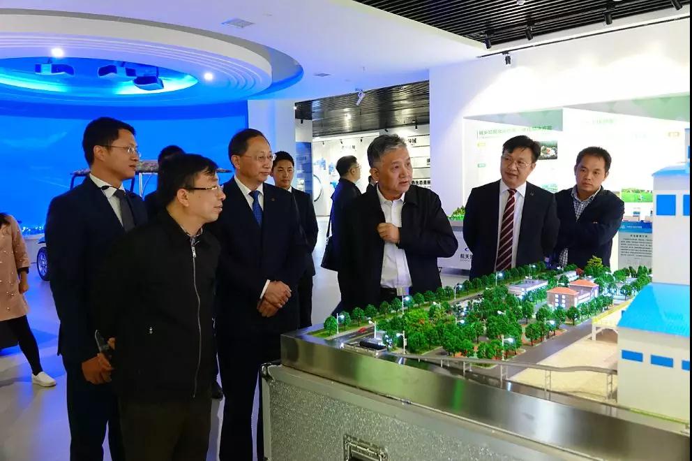 當(dāng)天,吳曉青一行參觀了航天凱天環(huán)保展示運(yùn)營中心,展廳運(yùn)用沙盤、VR互動體驗(yàn)等多媒體手段,全方位展示公司在建設(shè)綠色生態(tài)智慧城市、綠色生態(tài)美麗鄉(xiāng)村、綠色生態(tài)工業(yè)園區(qū)以及綠色生態(tài)健康家庭方面的成就。