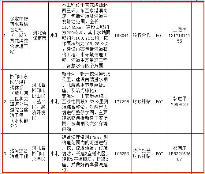 日前,河北省發(fā)布了2018年傳統(tǒng)基礎(chǔ)設(shè)施領(lǐng)域PPP項目,鼓勵和引導(dǎo)民間資本進(jìn)入能源、交通運輸、水利、環(huán)境保護(hù)、農(nóng)業(yè)、林業(yè)、重大市政工程等傳統(tǒng)基礎(chǔ)設(shè)施領(lǐng)域,共18個項目,涉及垃圾焚燒發(fā)電、流域綜合治理等7個環(huán)保項目,詳情如下:
