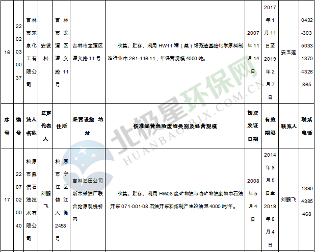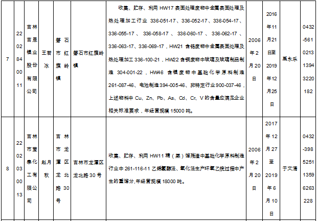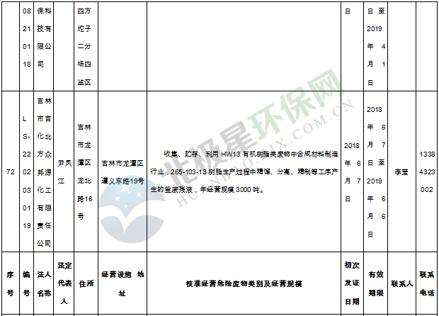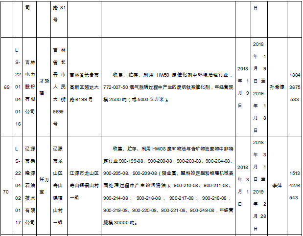 北極星固廢網(wǎng)獲悉嗎,日前吉林省環(huán)保廳發(fā)布了《吉林省危險廢物經(jīng)營許可證持證企業(yè)名單(2018年9月更新)》,共涉及74家企業(yè),且附有聯(lián)系方式。具體內容如下: