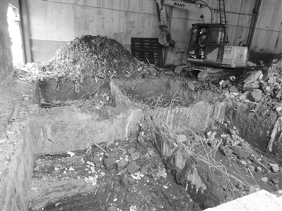 環(huán)境執(zhí)法人員在常熟市古里鉚焊廠有限公司表面處理車間內開挖出表面設施下位池。黃駿 攝