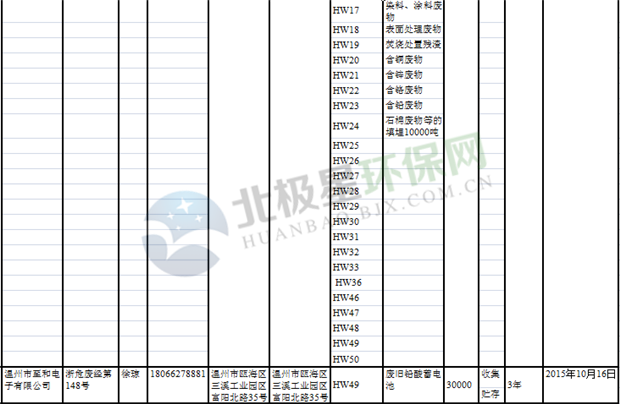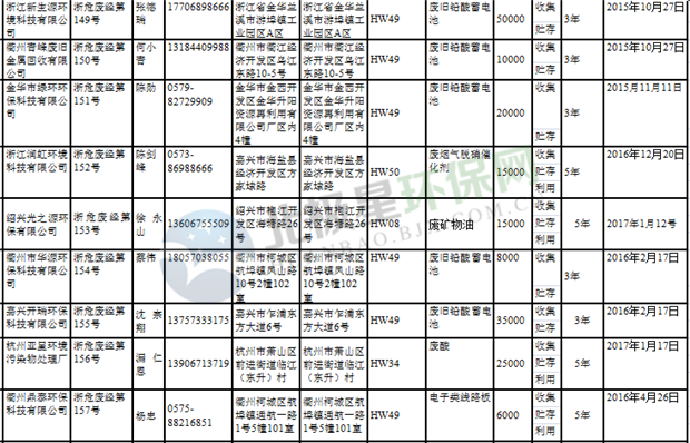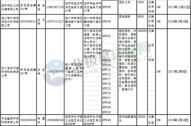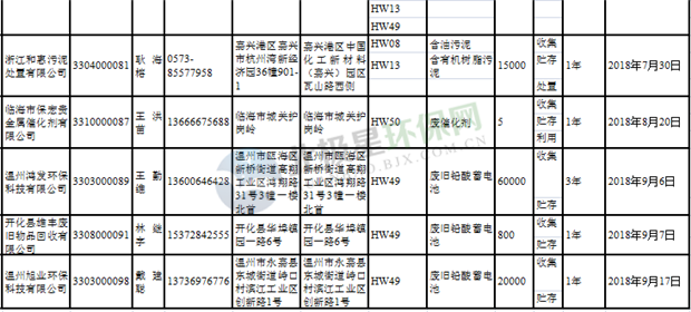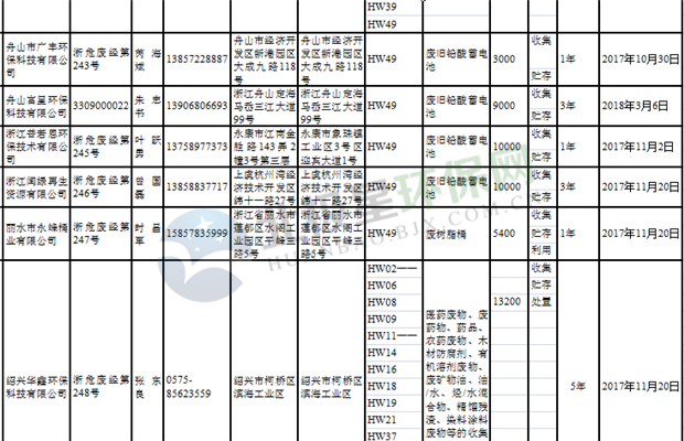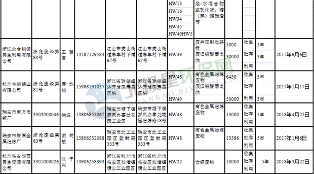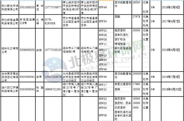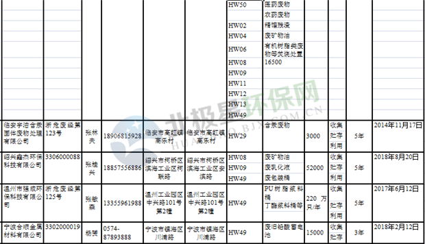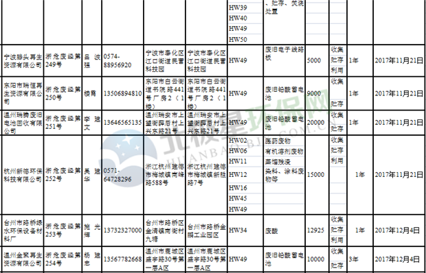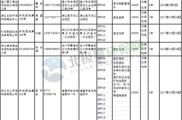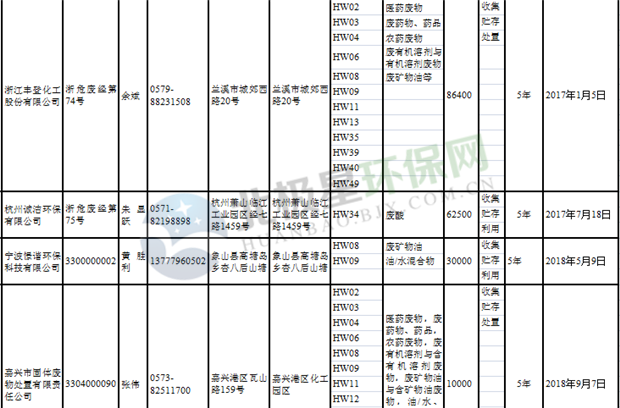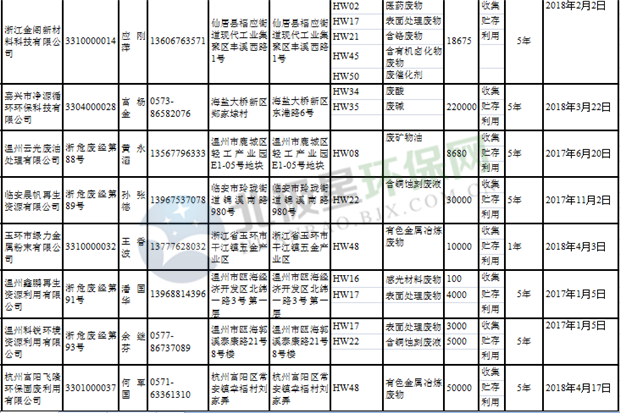 日前浙江省生態(tài)環(huán)境廳發(fā)布了《浙江省危險(xiǎn)廢物經(jīng)營單位名單(2018年10月26日更新)》,涉及企業(yè)255家,并附有聯(lián)系電話。具體內(nèi)容如下: