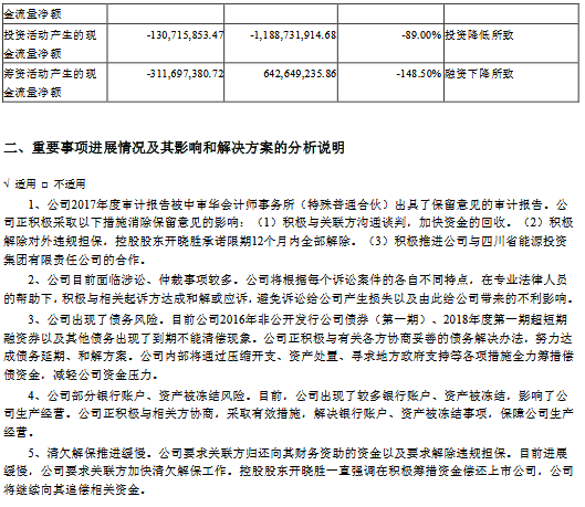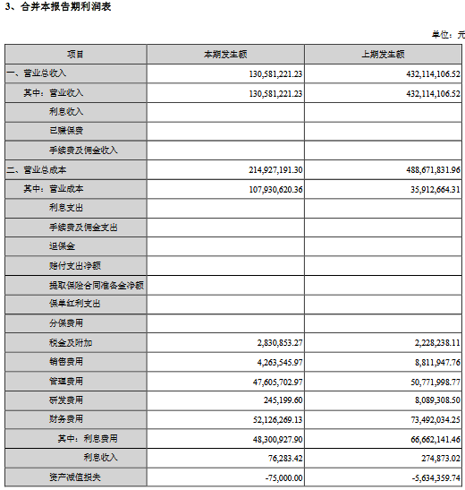 公告顯示,公司前三季度營業(yè)收入584,091,258.33元,同比減少52.62%,歸屬上市公司股東的凈利潤-209,729,620.45元,同比減少5737.61%。