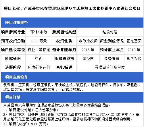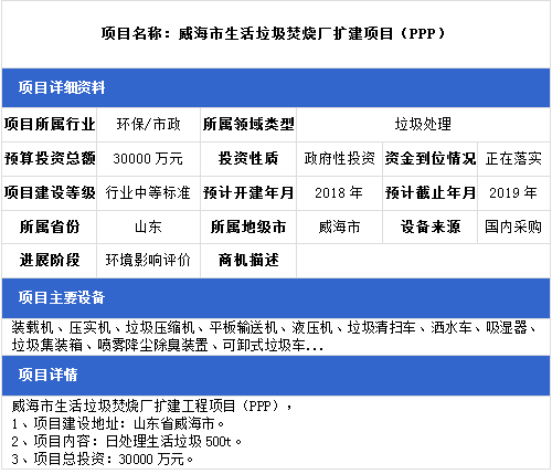 中項(xiàng)網(wǎng)獨(dú)家授權(quán)北極星固廢網(wǎng)發(fā)布最新垃圾處理項(xiàng)目(2018年11月5日更新),其中包括城鄉(xiāng)環(huán)衛(wèi)一體化項(xiàng)目、垃圾填埋場(chǎng)項(xiàng)目、垃圾焚燒發(fā)電項(xiàng)目等。具體內(nèi)容如下: