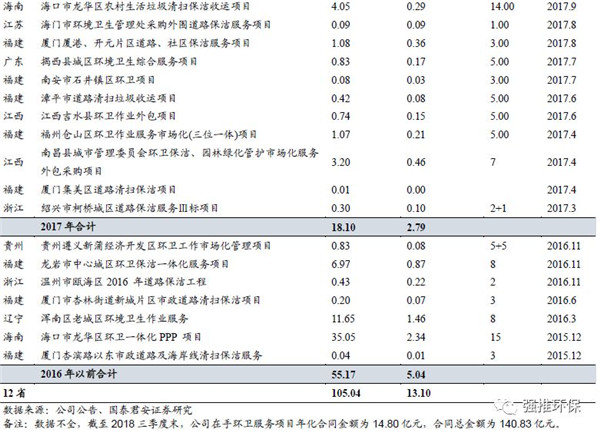 環(huán)衛(wèi)服務(wù)快速發(fā)展,在手訂單充足。公司從2015年開始開拓環(huán)衛(wèi)服務(wù)業(yè)務(wù),中標(biāo)??邶埲A區(qū)及沈陽(yáng)渾南區(qū)項(xiàng)目標(biāo)志公司具備全國(guó)拓展環(huán)衛(wèi)服務(wù)業(yè)務(wù)的能力。截至目前,公司在手環(huán)衛(wèi)服務(wù)項(xiàng)目年化合同金額為14.80億元,合同總金額為140.83億元,充足的在手訂單是未來業(yè)績(jī)高增長(zhǎng)的有力保障。