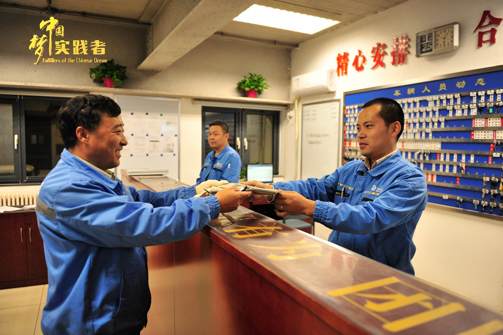 凌晨四點(diǎn)半,當(dāng)整個(gè)京城還在熟睡時(shí),王師傅宿舍的燈已經(jīng)亮了。刷牙、洗臉、出門,五點(diǎn)鐘王金標(biāo)準(zhǔn)時(shí)到達(dá)調(diào)度室,簽到、酒精測試、領(lǐng)取任務(wù)單、早班會(huì)、檢查車輛……接下來就是一整天緊張忙碌的工作。