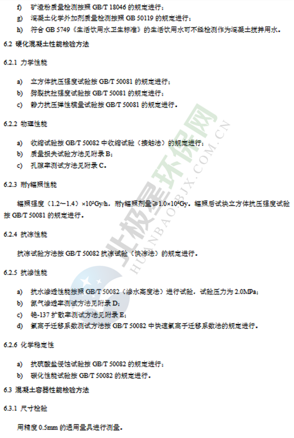為貫徹《中華人民共和國環(huán)境保護(hù)法》《中華人民共和國放射性污染防治法》《中華人民共和國核安全法》,防治放射性污染,改善環(huán)境質(zhì)量,保護(hù)人體健康,制定本標(biāo)準(zhǔn)。低、中水平放射性廢物高完整性容器系列標(biāo)準(zhǔn)由三個(gè)不同材料制成的高完整性容器系列標(biāo)準(zhǔn)組成:—《低、中水平放射性廢物高完整性容器—球墨鑄鐵容器》(GB36900.1);—《低、中水平放射性廢物高完整性容器—混凝土容器》(GB36900.2);—《低、中水平放射性廢物高完整性容器—交聯(lián)高密度聚乙烯容器》(GB36900.3)。本標(biāo)準(zhǔn)為其中第二部分《低、中水平放射性廢物高完整性容器—混凝土容器》(GB36900.2),規(guī)定了用于包裝低、中水平放射性固體廢物所使用的混凝土高完整性容器(以下簡稱“混凝土容器”)的基本安全要求、產(chǎn)品性能要求、檢驗(yàn)方法、檢驗(yàn)規(guī)則、標(biāo)識和產(chǎn)品的貯存和運(yùn)輸要求。附錄A~G為規(guī)范性附錄。本標(biāo)準(zhǔn)為首次發(fā)布。