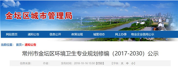 常州市金壇區(qū)環(huán)境衛(wèi)生專業(yè)規(guī)劃修編(2017-2030)公示