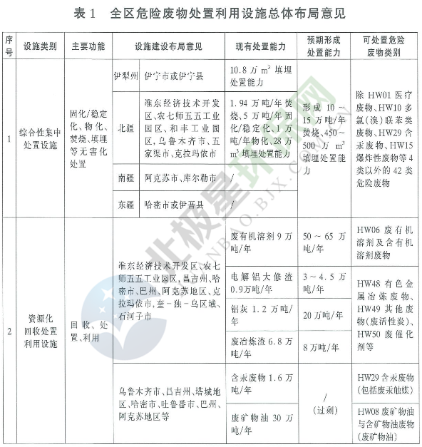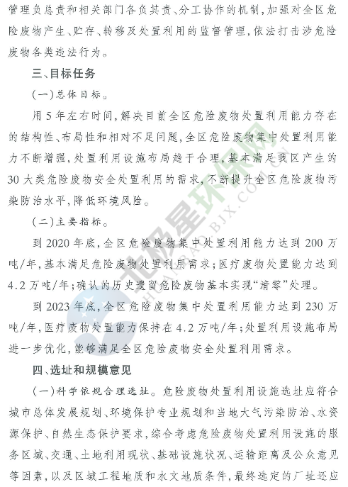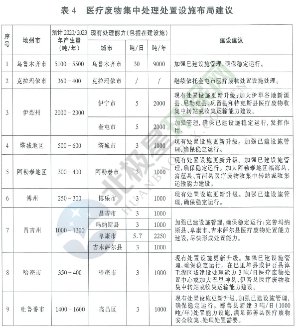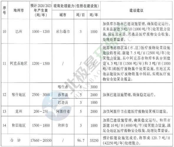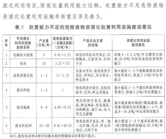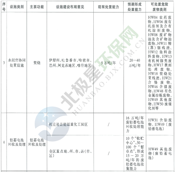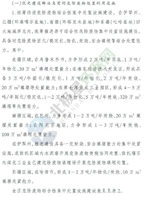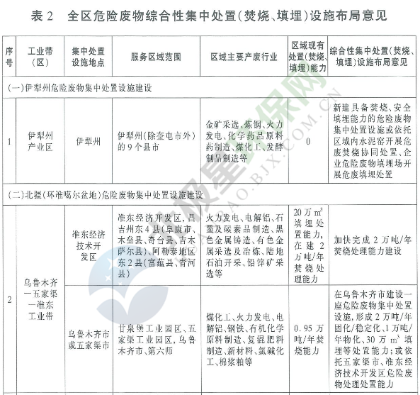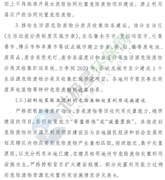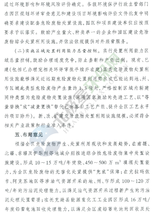 新疆提出,到2020年底,全區(qū)危險廢物集中處置利用能力達(dá)到200萬噸/年,2023年底達(dá)到230萬噸/年。