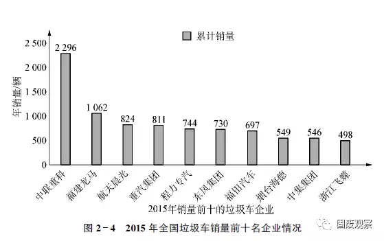 2015年,全國銷量前10企業(yè)合計完成垃圾車銷售8757輛,在全國垃圾車總銷量中的占有份額達(dá)到53.44%,同比提升6.89%。