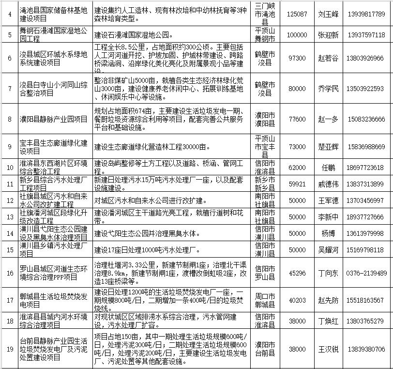 河南省向民間資本推介重點(diǎn)領(lǐng)域項(xiàng)目清單:涉及多個(gè)環(huán)保項(xiàng)目