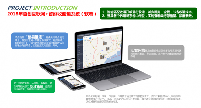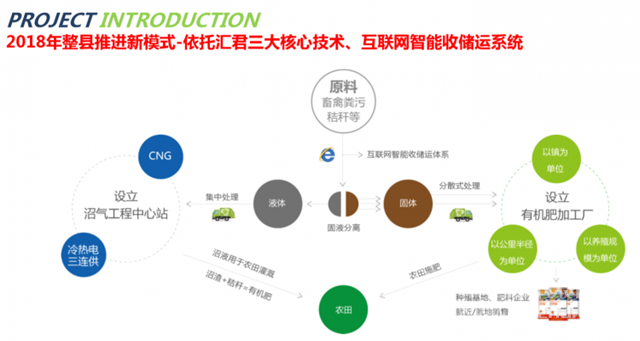 國家從2008年開始開始關(guān)注畜禽處理,2017年已經(jīng)開始形成規(guī)?;6鴧R君環(huán)能同時(shí)也從去年開始著手規(guī)劃整縣(市)資源化的處理,利用匯君模式,根據(jù)當(dāng)?shù)氐膶?shí)際情況,合理規(guī)劃沼氣工程中心站,另外以村鎮(zhèn)為單位、以公里半徑為單位、以養(yǎng)殖規(guī)模為單位,建立有機(jī)肥加工廠,采用智能化收儲(chǔ)運(yùn)平臺(tái),有效利用地方的政策,配合消納政策,實(shí)現(xiàn)全方位畜禽糞污資源化智能處理。