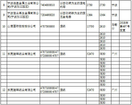 日前中國固廢化學(xué)品管理網(wǎng)發(fā)布了《建議批準(zhǔn)的限制進口類申請明細表(2018年第24批)》,其中涉及30家企業(yè)具體內(nèi)容如下: