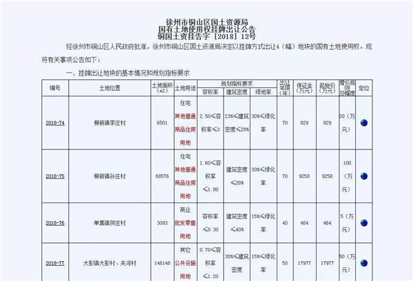 巧合的是,該幅地塊同徐州市銅山區(qū)國(guó)土資源局于10月18日發(fā)布的國(guó)有土地使用權(quán)掛牌出讓公告銅國(guó)土資掛告字[2018]12號(hào)中的2018-77地塊為同一地塊。