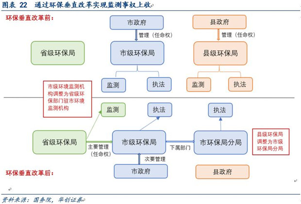 通過環(huán)保監(jiān)測垂直改革將環(huán)境監(jiān)測事權(quán)上收。2016年9月環(huán)保部印發(fā)《關(guān)于省以下環(huán)保機(jī)構(gòu)監(jiān)測監(jiān)察執(zhí)法垂直管理制度改革試點(diǎn)工作的指導(dǎo)意見》,調(diào)整地方環(huán)境保護(hù)管理體制重新劃定各省市縣的監(jiān)管力量和監(jiān)管責(zé)任,涉及體制結(jié)構(gòu)、經(jīng)費(fèi)保障、人員劃轉(zhuǎn)等多個(gè)方面。通過垂直管理制度改革實(shí)現(xiàn)環(huán)境監(jiān)測事權(quán)的上收要求:體制上,省級環(huán)保部門直接管理市級環(huán)境監(jiān)測機(jī)構(gòu),確保生態(tài)環(huán)境質(zhì)量監(jiān)測數(shù)據(jù)真實(shí)有效;市級統(tǒng)一管理行政區(qū)域內(nèi)的環(huán)境執(zhí)法力量,依法獨(dú)立行使環(huán)境執(zhí)法權(quán)。保障上,駐市級環(huán)境監(jiān)測機(jī)構(gòu)的人財(cái)物管理在省級,縣級環(huán)保部門的人財(cái)物管理在市級。人員管理上,縣級環(huán)保分局領(lǐng)導(dǎo)班子由市級環(huán)保局直接管理,市級環(huán)保局領(lǐng)導(dǎo)班子由省級環(huán)保廳(局)主管。因而能夠有效的克服地方保護(hù)主義,從根源上解決監(jiān)測數(shù)據(jù)造假的問題,提升監(jiān)測數(shù)據(jù)有效性。