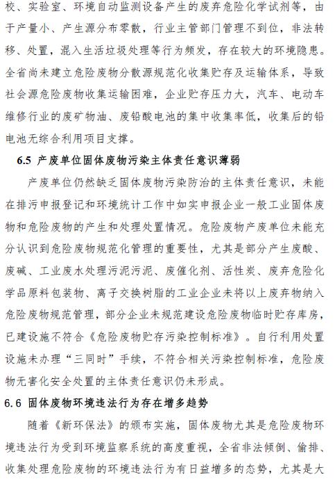 然而,當前我省正處于工業(yè)化和城鎮(zhèn)化快速發(fā)展的階段,產(chǎn)業(yè)結構偏重,固體廢物產(chǎn)生量時空分布不均,固廢處理處置設施與產(chǎn)生量不匹配的問題突出,尤其是工業(yè)固體廢物產(chǎn)生量持續(xù)增加,危險廢物、污水處理廠污泥等固體廢物的處理處置問題未得到根本解決,加上全省固體廢物管理能力十分薄弱,固體廢物污染防治形勢嚴峻。2016 年,國務院印發(fā)《土壤污染防治行動計劃》,對固體廢物污染防治均提出了明確要求,科學制定《固體廢物污染防治規(guī)劃期規(guī)劃》為今后一個時期開展全省固體廢物減量化、資源化、無害化提拱了重要依據(jù),對于確?!耙唤逅驏|流”,實現(xiàn)經(jīng)濟綠色發(fā)展具有重大現(xiàn)實意義。
