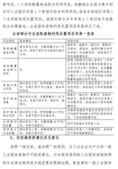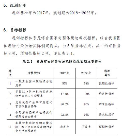 日前,青海印發(fā)《青海省固體廢物污染防治規(guī)劃(2018年-2022年)(征求意見稿)》。