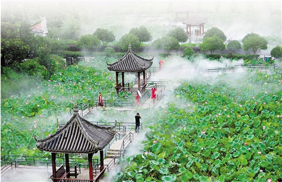 7月16日清晨6時,陽光灑向永康市舟山鎮(zhèn)端巖村端頭自然村的荷塘。攝影愛好者徐恭強來了:“今天5點起床,特意從城里趕過來拍照?!笨粗§F慢慢升起,他舉起相機,定格美好瞬間?!白疃鄷r,同時有180個攝影師來拍荷塘!”端巖村黨支部書記俞海從荷塘中央的連廊走來,滿臉自豪。端頭村是個僅有146戶、398人的小...