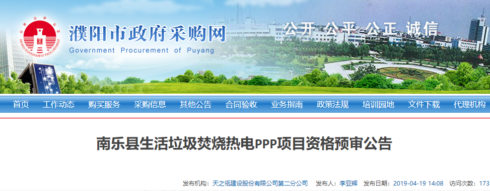 中國(guó)環(huán)聯(lián)網(wǎng)獲悉,4月19日,河南濮陽(yáng)南樂(lè)縣生活垃圾焚燒熱電PPP項(xiàng)目發(fā)布資格預(yù)審公告,采購(gòu)控制價(jià)為每噸垃圾補(bǔ)貼費(fèi)不超過(guò)62.87元。項(xiàng)目概況及采購(gòu)內(nèi)容項(xiàng)目名稱(chēng):南樂(lè)縣生活垃圾焚燒熱電PPP項(xiàng)目。項(xiàng)目編號(hào):HNTZL-2019-016采購(gòu)方式:公開(kāi)招標(biāo)。項(xiàng)目概況:本項(xiàng)目設(shè)計(jì)日處理垃圾量為600噸/日,...