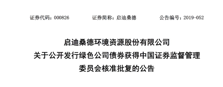 日前,中國(guó)環(huán)聯(lián)網(wǎng)獲悉,啟迪桑德發(fā)布公告稱(chēng),公司擬發(fā)行不超過(guò)50億綠色公司債已經(jīng)獲得證監(jiān)會(huì)批復(fù)。詳情如下:2019年4月30日,啟迪桑德環(huán)境資源股份有限公司(以下簡(jiǎn)稱(chēng)“公司”)收到中國(guó)證券監(jiān)督管理委員會(huì)(以下簡(jiǎn)稱(chēng)“中國(guó)證監(jiān)會(huì)”)出具的《關(guān)于核準(zhǔn)啟迪桑德環(huán)境資源股份有限公司向合格投資者公開(kāi)發(fā)行綠色公司債...