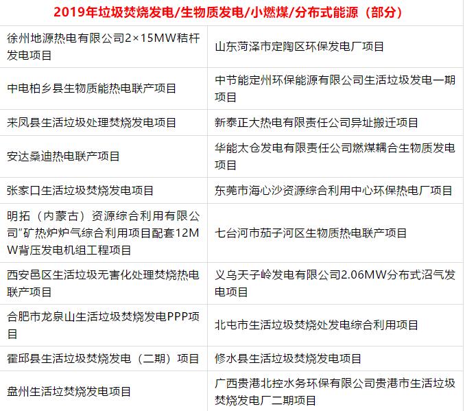 本文整理了2019年垃圾焚燒發(fā)電/生物質(zhì)發(fā)電/小燃煤/分布式能源中標、在建的部分項目,詳情如下: