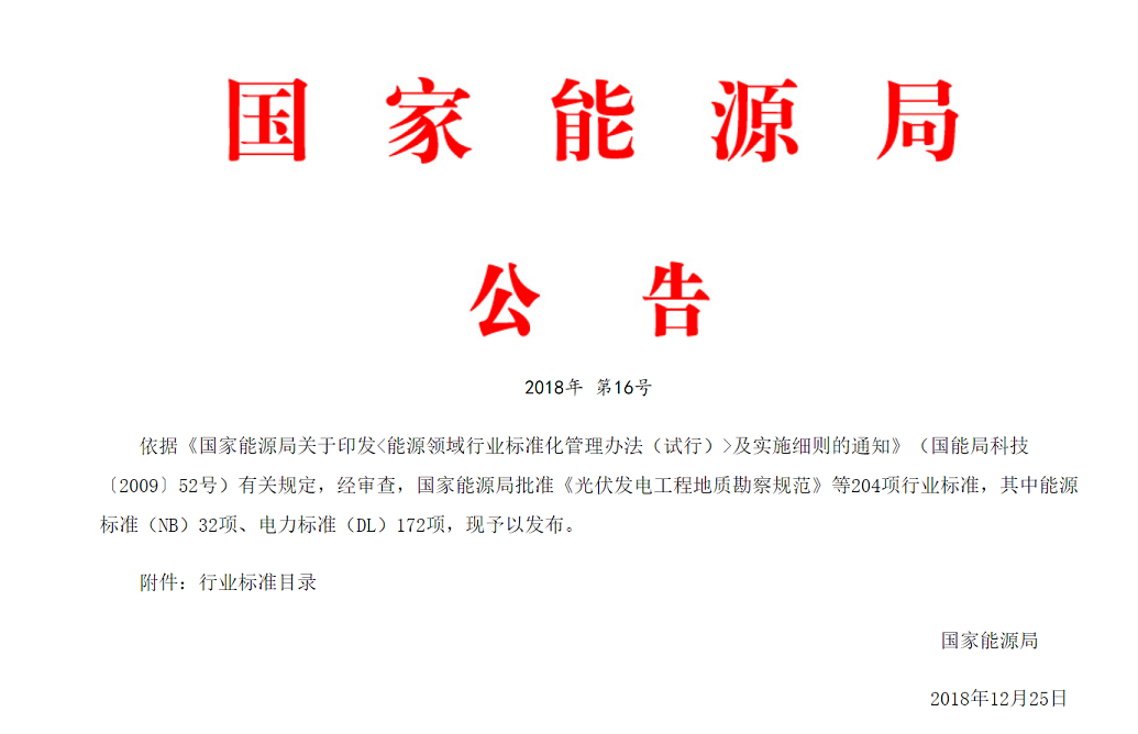 2018年12月25日,國(guó)家能源局發(fā)布2018年第16號(hào)公告,批準(zhǔn)了204項(xiàng)行業(yè)標(biāo)準(zhǔn),并予以發(fā)布。其中由中國(guó)電力企業(yè)聯(lián)合會(huì)垃圾發(fā)電標(biāo)準(zhǔn)化技術(shù)委員會(huì)提出并組織編制的第二批三項(xiàng)電力行業(yè)標(biāo)準(zhǔn)《垃圾發(fā)電廠監(jiān)控系統(tǒng)技術(shù)規(guī)范》(DL/T 1937-2018)、《垃圾發(fā)電廠爐渣處理技術(shù)規(guī)范》(DL/T1938-2...