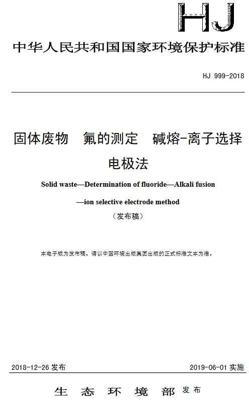 日前生態(tài)環(huán)境部發(fā)布了國家環(huán)境保護標準:《固體廢物氟的測定 堿熔-離子選擇電極法》(HJ 999-2018),具體內(nèi)容如下:固體廢物 氟的測定 堿熔-離子選擇電極法Solid waste—Determination of fluoride—Alkali fusion—ion ive electrode...