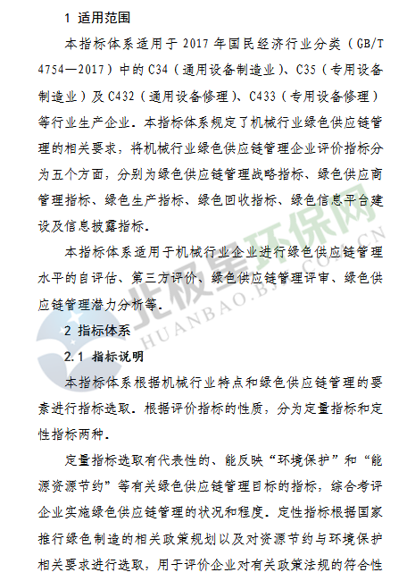 11月23日《機(jī)械行業(yè)綠色供應(yīng)鏈管理企業(yè)評(píng)價(jià)指標(biāo)體系》、《汽車行業(yè)綠色供應(yīng)鏈管理企業(yè)評(píng)價(jià)指標(biāo)體系》及《電器電子行業(yè)綠色供應(yīng)鏈管理企業(yè)評(píng)價(jià)指標(biāo)體系》公示征求意見,具體內(nèi)容如下:為貫徹落實(shí)《工業(yè)綠色發(fā)展規(guī)劃(2016-2020年)》、《綠色制造工程實(shí)施指南(2016-2020年)》,加快構(gòu)建綠色制造體系...