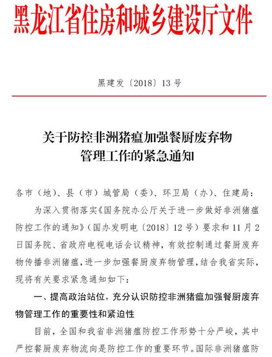 日前,黑龍江住建廳發(fā)布了關(guān)于防控非洲豬瘟加強(qiáng)餐廚廢棄物管理工作的緊急通知,《通知》指出,目前,全國和我省非洲豬瘟防控工作形勢十分嚴(yán)峻。國際非洲豬瘟防控實(shí)踐表明,餐廚廢棄物喂豬是非洲豬瘟傳播的重要途徑之一。各地要杜絕泔水喂豬,依據(jù)《黑龍江省食品安全條例》,建立健全餐廚廢棄物監(jiān)管機(jī)制,將餐飲經(jīng)營者和單位...