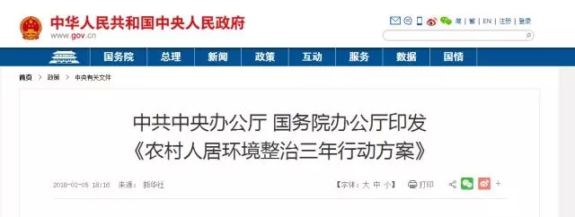 5號(hào),中共中央辦公廳 國(guó)務(wù)院辦公廳印發(fā)《農(nóng)村人居環(huán)境整治三年行動(dòng)方案》?!斗桨浮访鞔_,以建設(shè)美麗宜居村莊為導(dǎo)向,以農(nóng)村垃圾、污水治理和村容村貌提升為主攻方向,到2020年,實(shí)現(xiàn)農(nóng)村人居環(huán)境明顯改善,村莊環(huán)境基本干凈整潔有序,村民環(huán)境與健康意識(shí)普遍增強(qiáng)。來(lái)源:中國(guó)經(jīng)濟(jì)網(wǎng)、中國(guó)政府網(wǎng)國(guó)家發(fā)改委解讀:讓農(nóng)...