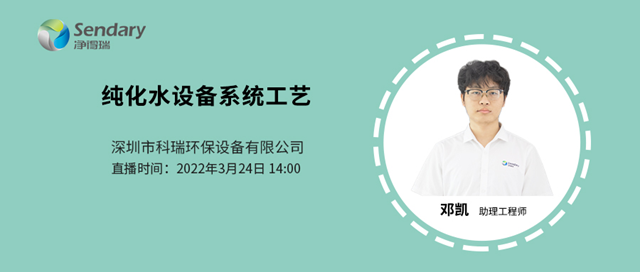 3月24日14:00,由凈得瑞帶來的《純化水設(shè)備系統(tǒng)工藝》即將開播,精彩內(nèi)容盡在直播間,歡迎大家準時觀看!圖一 【直播預(yù)告】純化水設(shè)備系統(tǒng)工藝(點擊圖片進入直播間) 純化水設(shè)備系統(tǒng)是針對醫(yī)藥企業(yè)的用水特點而設(shè)計,主要用于制劑、配液和沖洗。設(shè)備主要采用反滲透及EDI技術(shù),結(jié)合預(yù)處理裝置配套使用,有效去...