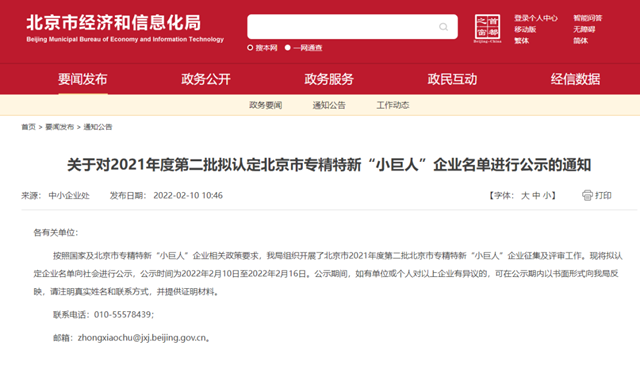 2022年2月10日,北京市經(jīng)濟和信息化局公示了2021年度第二批專精特新“小巨人”企業(yè)名單,北京瀧濤環(huán)境科技有限公司憑借在生態(tài)環(huán)境領(lǐng)域持續(xù)的創(chuàng)新能力與技術(shù)先進(jìn)性,成為北京市專精特新“小巨人”企業(yè)。 早在2021年7月30日,中央政治局提出&ldquo...