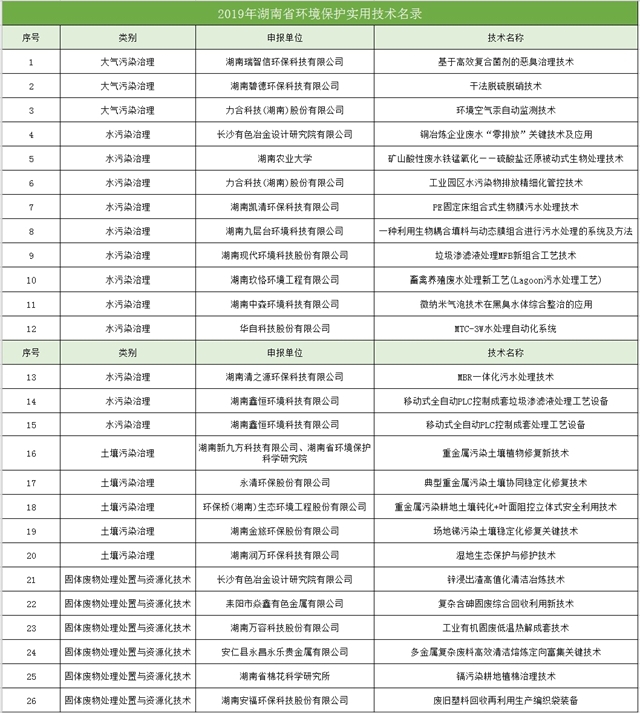 湖南省生態(tài)環(huán)境廳 湖南省科學(xué)技術(shù)廳關(guān)于發(fā)布2019年環(huán)境保護(hù)實(shí)用技術(shù)評(píng)選結(jié)果的通知 各市州生態(tài)環(huán)境局、科學(xué)技術(shù)局,各有關(guān)單位: 為發(fā)揮環(huán)保科技創(chuàng)新引領(lǐng)作用,促進(jìn)環(huán)保實(shí)用技術(shù)的成果轉(zhuǎn)化和應(yīng)用,引導(dǎo)環(huán)保產(chǎn)業(yè)技術(shù)進(jìn)步,滿足排污單位對(duì)環(huán)保技術(shù)和產(chǎn)品的需求,促進(jìn)污染防治工作,省生態(tài)環(huán)境廳、省科學(xué)技術(shù)...