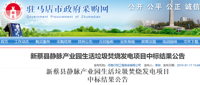 河南省新蔡縣靜脈產(chǎn)業(yè)園生活垃圾焚燒發(fā)電項目發(fā)布中標(biāo)結(jié)果公告,中國光大國際有限公司成為第一中標(biāo)候選人,垃圾處理補助單價58元/t。 中標(biāo)候選人結(jié)果具體如下: 第一中標(biāo)候選人:中國光大國際有限公司 中標(biāo)價:垃圾處理補助單價58元/t 第二中標(biāo)候選人:江蘇大吉環(huán)保能源大豐有限公司 中標(biāo)金額:垃圾處理補助單...