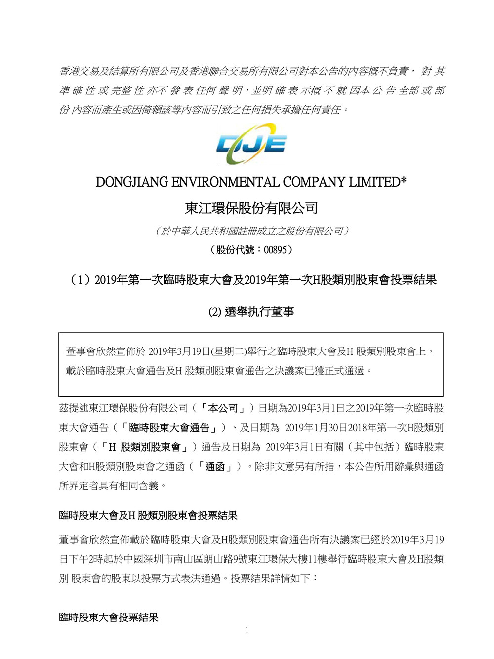 東江環(huán)保發(fā)布公告,于2019年3月19日舉行2019年第一次臨時(shí)股東大會(huì)上,選舉姚曙為公司第六屆董事會(huì)執(zhí)行董事,任期將自2019年第一次臨時(shí)股東大會(huì)審議通過之日起生效,至公司第六屆董事會(huì)任期屆滿。原標(biāo)題:東江環(huán)保(00895)選舉姚曙為執(zhí)行懂事