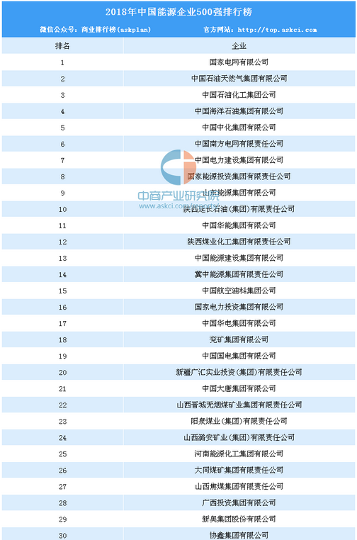 導(dǎo)讀:中商產(chǎn)業(yè)研究院發(fā)布了《2018年中國能源企業(yè)500強(qiáng)排行榜(附完整排名)》,起重量涉及多家垃圾發(fā)電企業(yè),如中國節(jié)能集團(tuán)、深圳能源集團(tuán)、杭州錦江集團(tuán)等。具體內(nèi)容如下:日前,2018年中國能源企業(yè)500強(qiáng)榜單出爐。據(jù)悉,此榜單以各能源集團(tuán)上一年度營業(yè)收入為評價(jià)標(biāo)準(zhǔn),數(shù)據(jù)主要來企業(yè)自報(bào)、相關(guān)機(jī)構(gòu)或企...