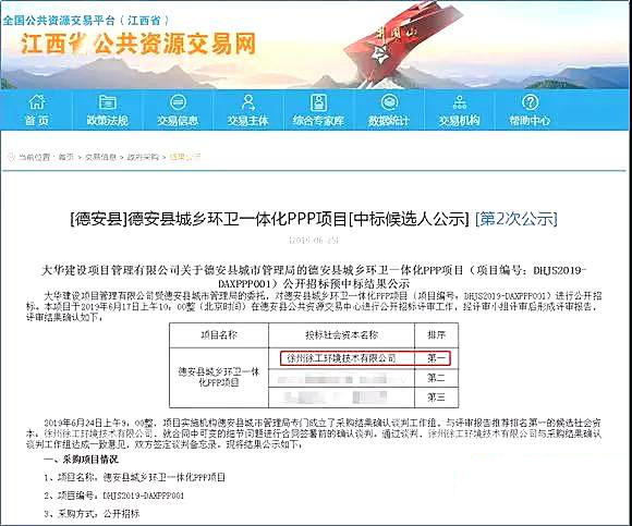 日前,徐工環(huán)境成功中標江西省德安縣城鄉(xiāng)環(huán)衛(wèi)一體化PPP項目,合同總額為7.38億元。該項目是徐工環(huán)境在江西市場第一個落地的環(huán)衛(wèi)PPP項目,也是目前江西省合同總額最高的環(huán)衛(wèi)PPP項目,同時標志著徐工環(huán)衛(wèi)運營項目累計合同額即將突破100億元。經過緊張有序地投標、專業(yè)評審組的逐級評審,徐工環(huán)境憑借過硬的產...